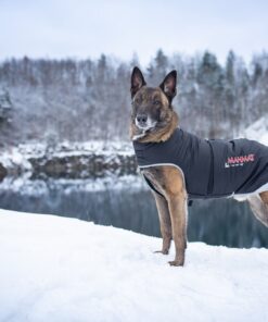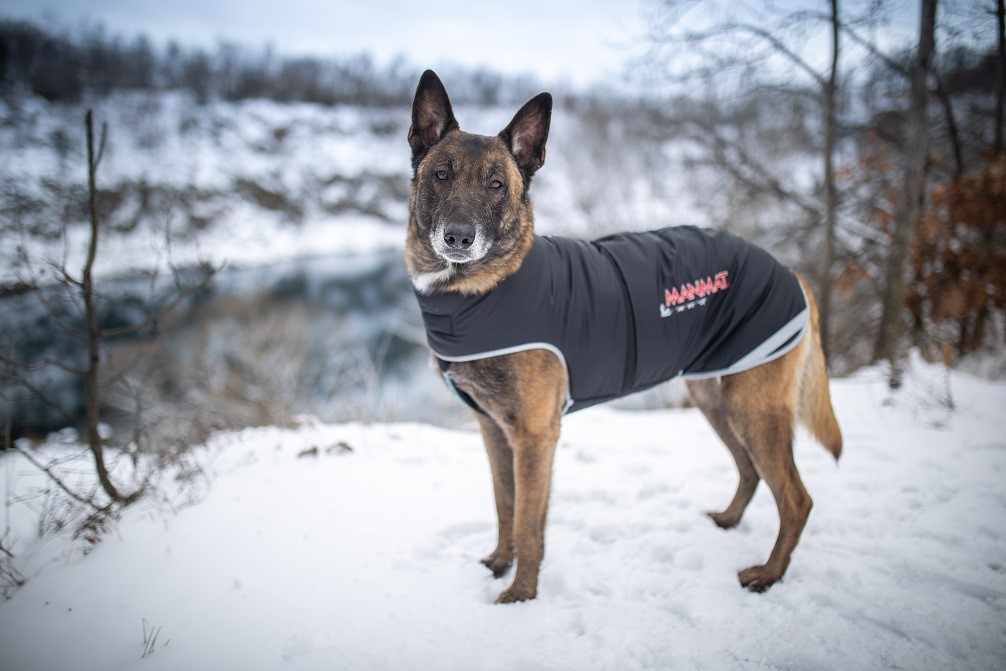 ManMat THERMO coat er et dækken, der holder din hund varm under canicross, hundesport, træning og vinterture. Perfekt til hunde med kort eller sparsom underuld, men også til mere pelsede racer. Mange mushers bruger det under løb i ekstreme forhold, og det er også ideelt til hunde, der skal holdes varme efter rygskader.