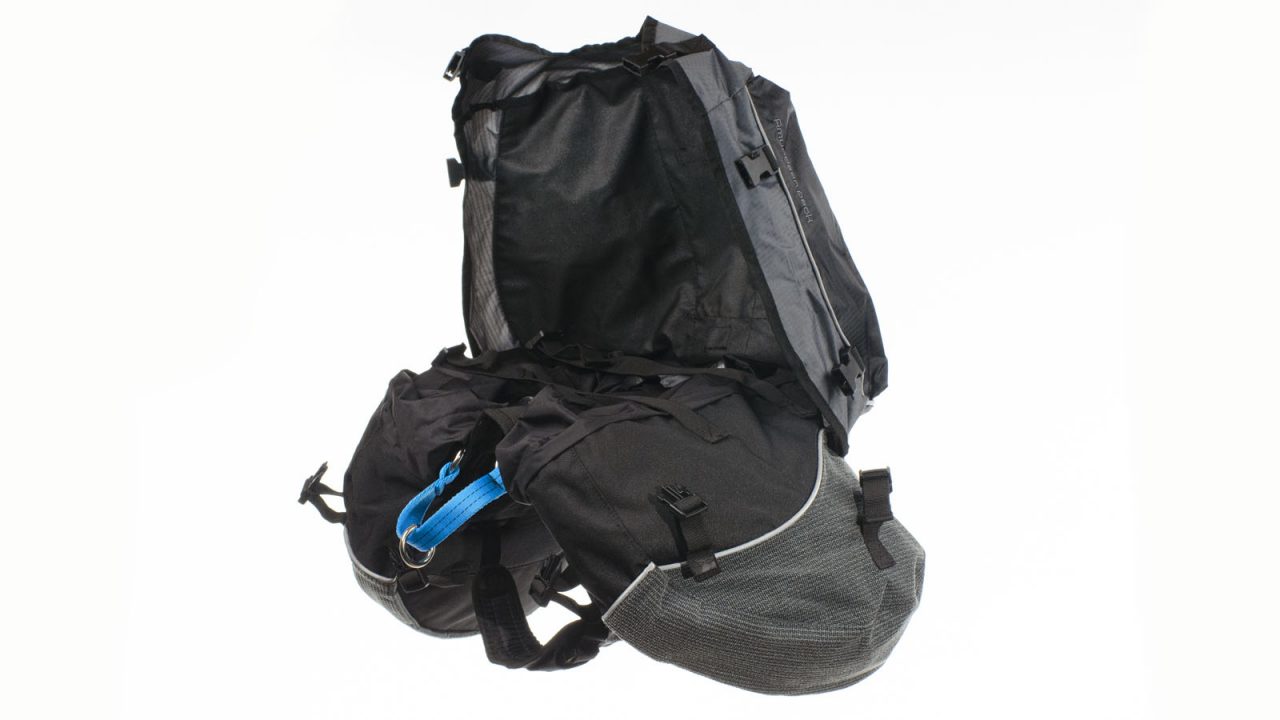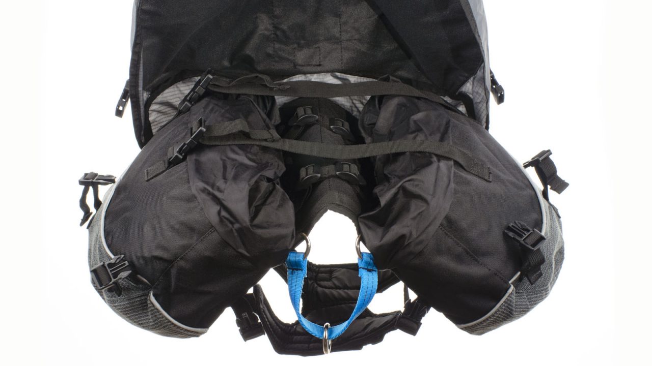 De to tasker har god opbevaringsplads og er lavet af vandafvisende og solidt stof og forstærket med kevlar for at modstå hårdt slid fra klipper og rødder. Kløvens låg har et lettere nylon rip der beskytter indholdet fra kviste og grene. Koblingsmontering til line er designet så det ikke forstyrrer kløvens position på hunden. En lille lomme øverst på låget til kort og kompas.