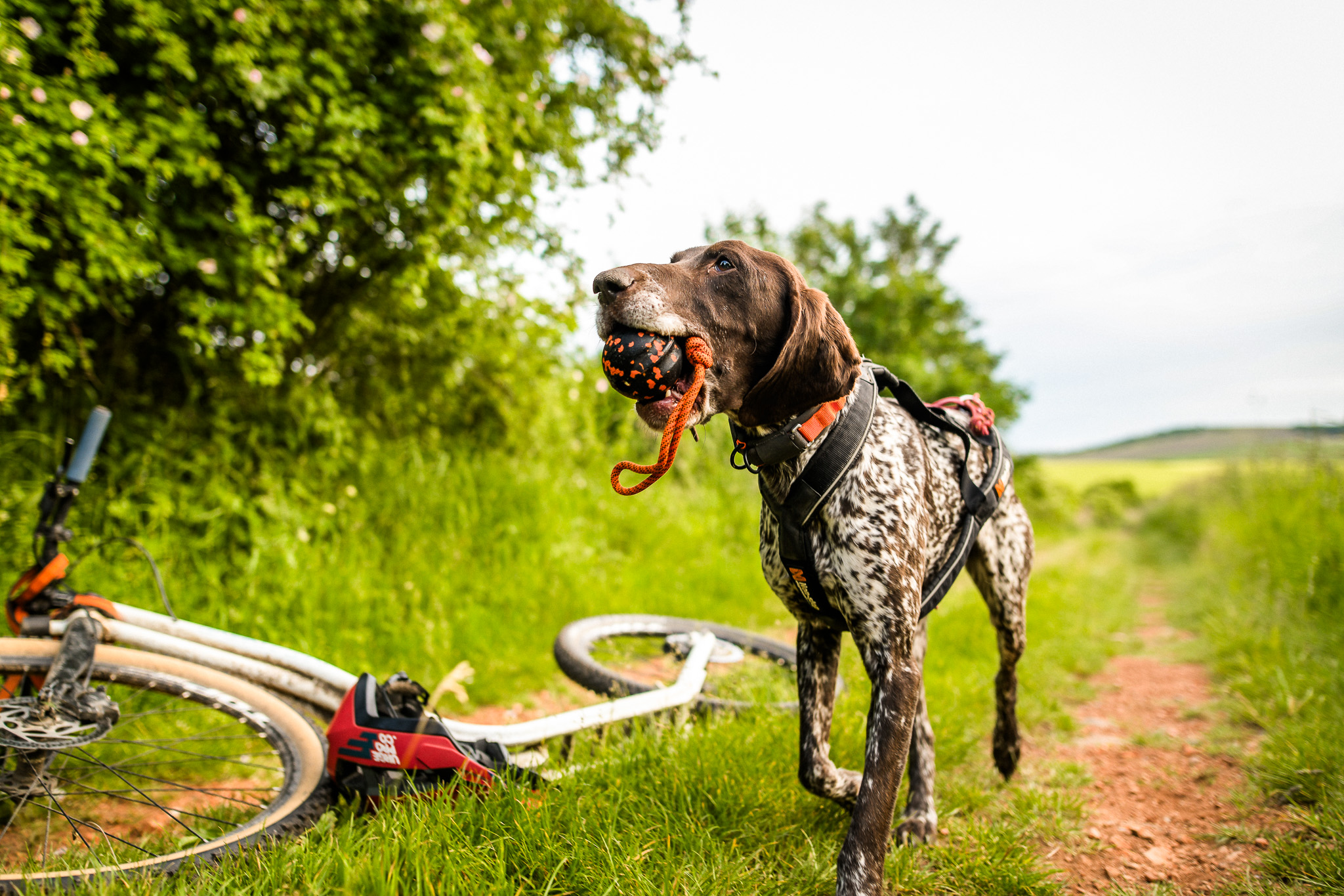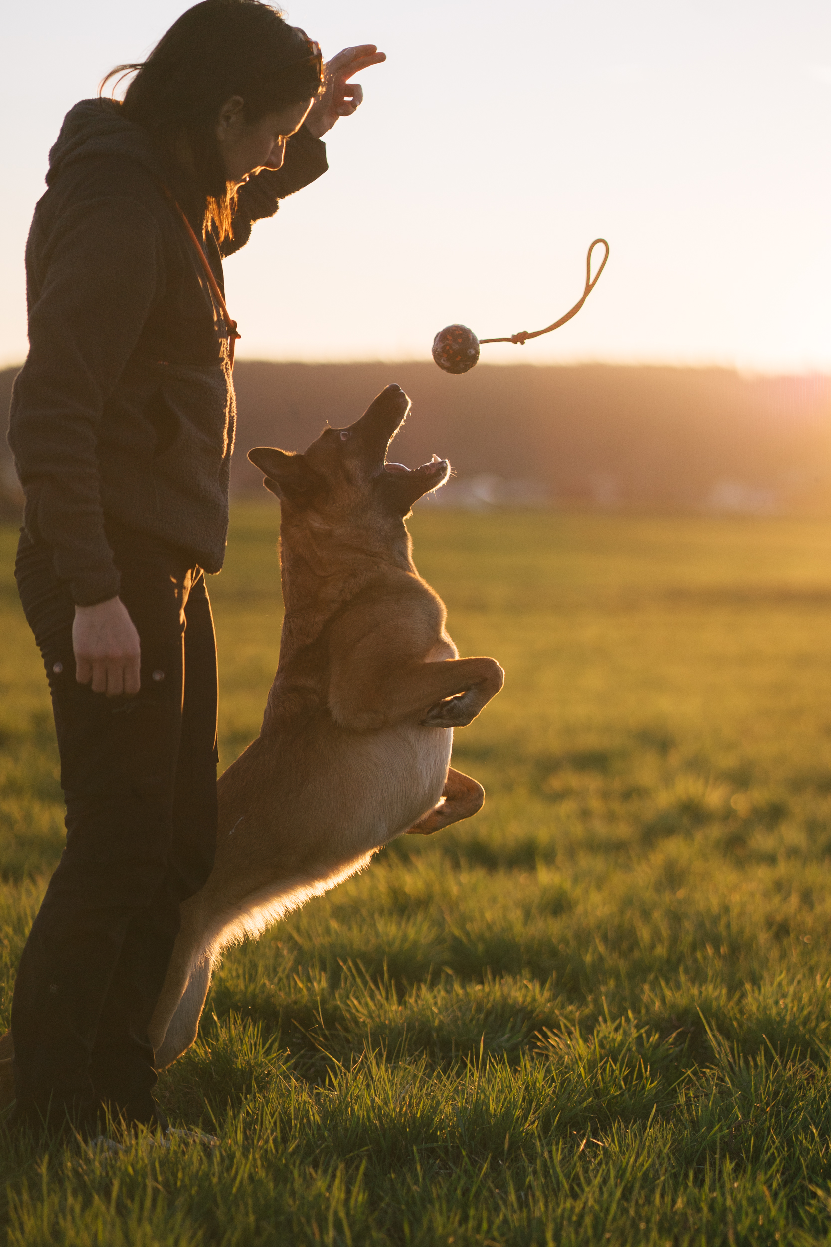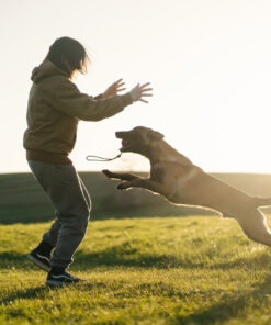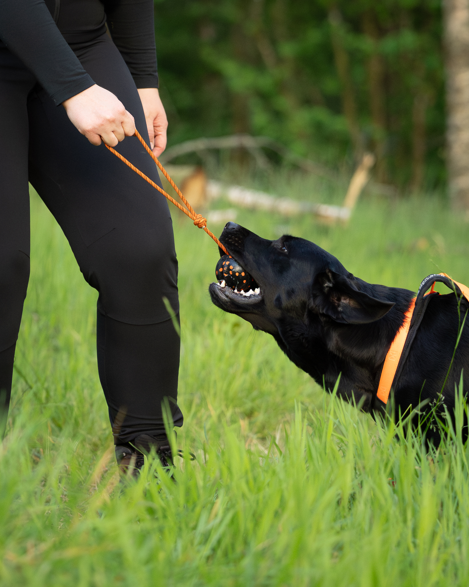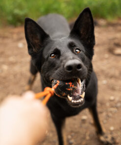 Slidstærk hundebold med reb – ideel til træk og apport