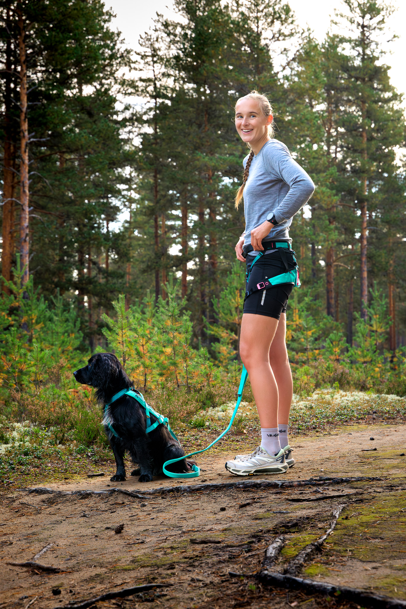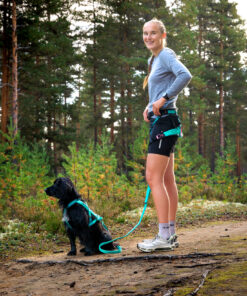 Kombiner løbebæltet med Bungee leash i aqua og Freemotion 5.0 selen i aqua.