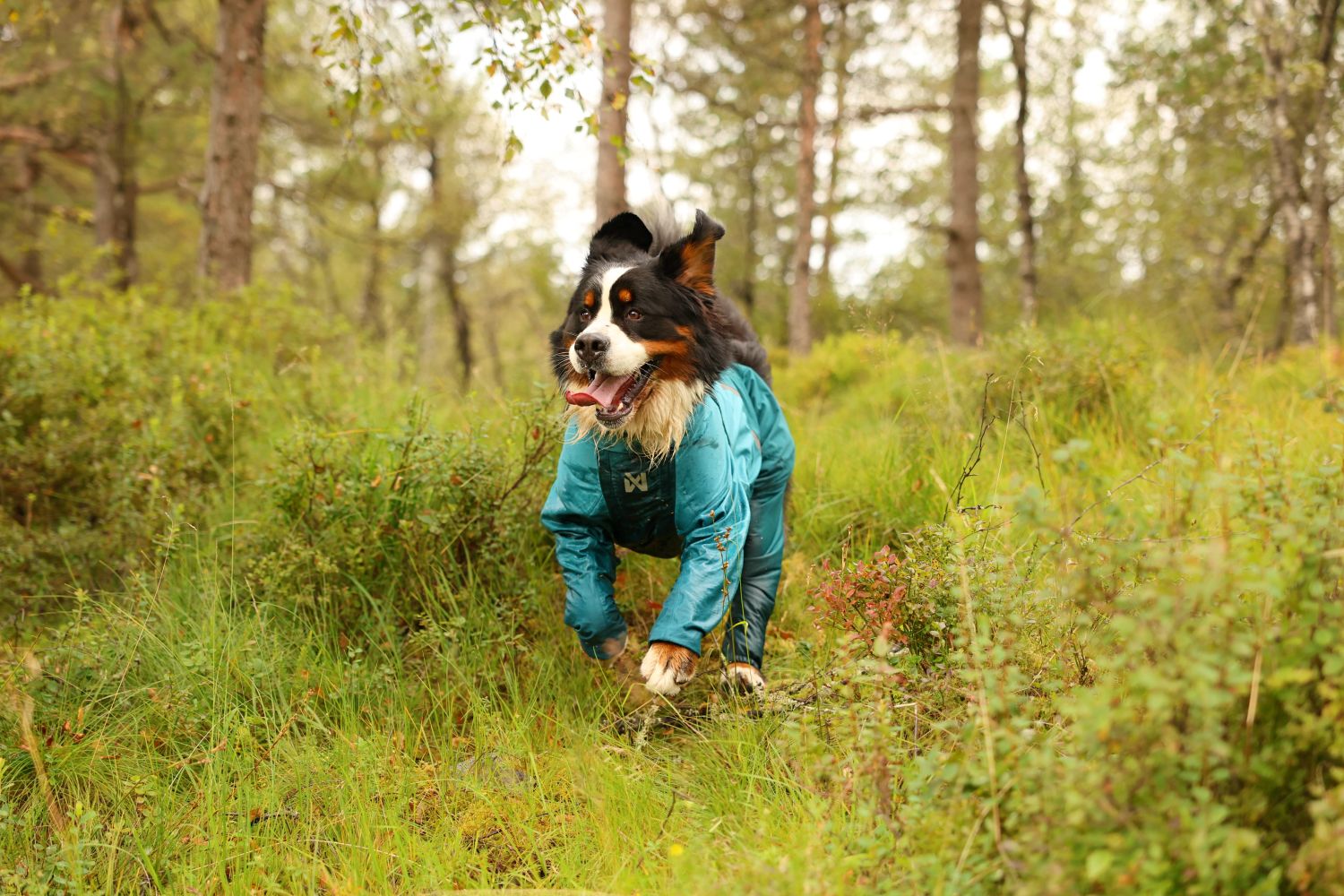 Non-stop Dogwear Fjord overall regndækken beskytter din hunds pels mod regn og mudder.