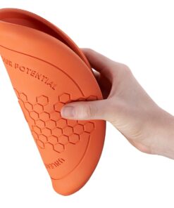 Det aerodynamiske design med tekstureret greb sikrer stabile kast og gør frisbeen ideel til korte og mellemlange distancer. Den klare orange farve giver høj synlighed i alle omgivelser – både på græs, strand og i skov.